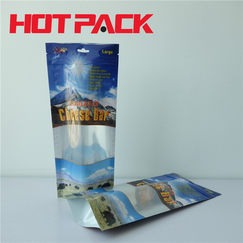 Cheese bar stand up pet food packaging with clear window