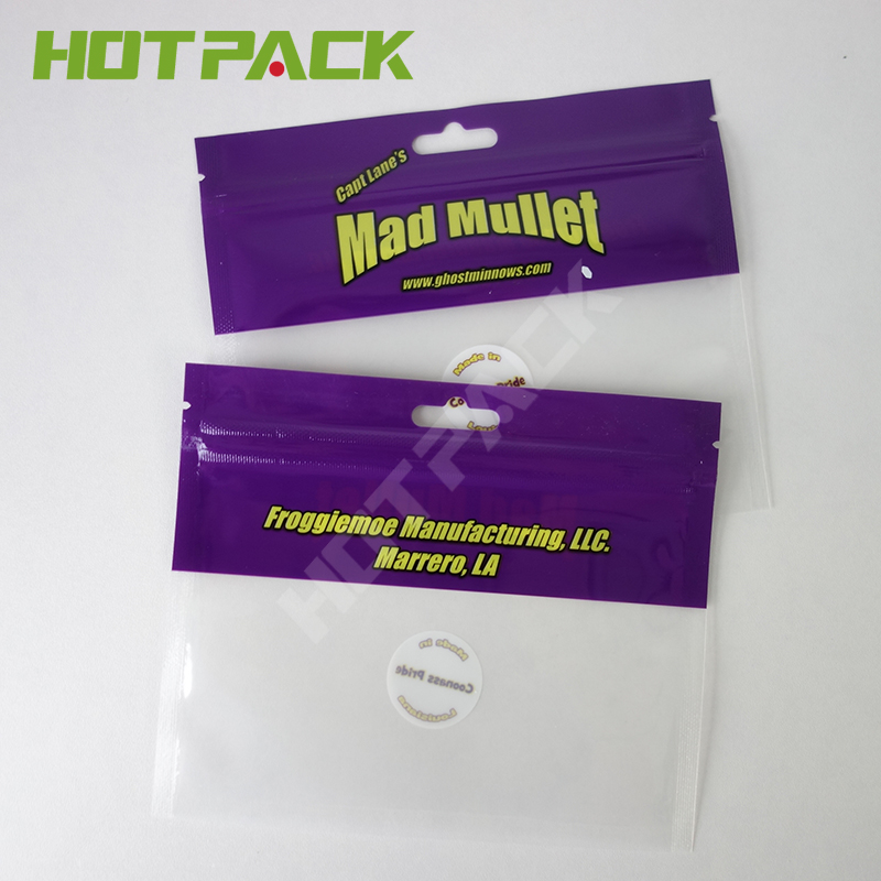 Custom Holographic ZipLock Plastic Pouch Bags For Fishing Bite Fish Lure Bait