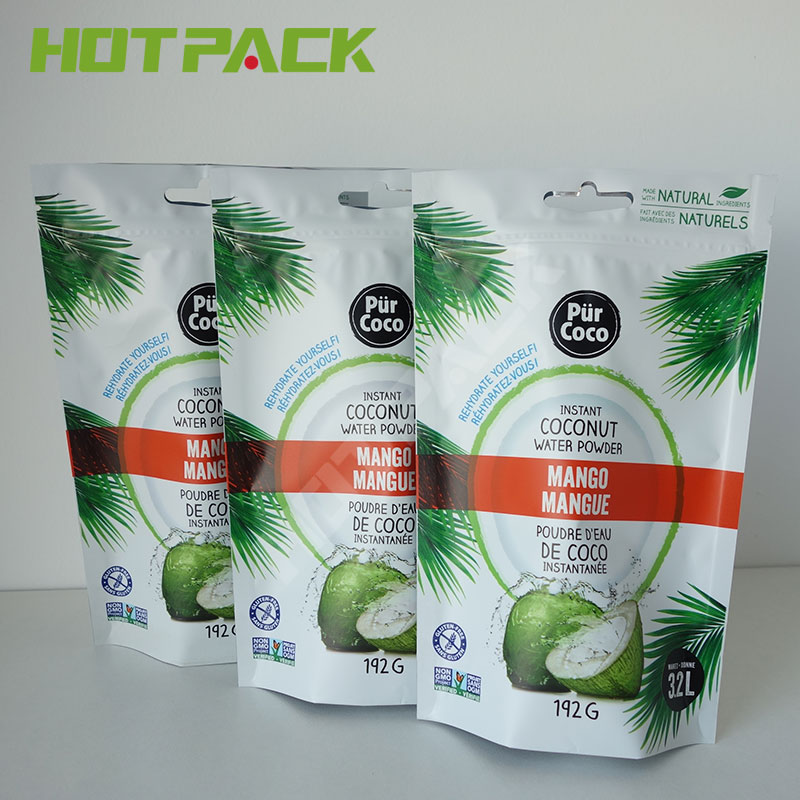 Coconut water powder bag with custom logo design printing gloss plastic doypack for powder |