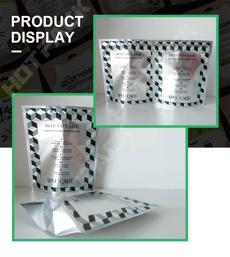 Custom Aluminized Plastic Packaging Stand up Pouch with Zipper for Facial care