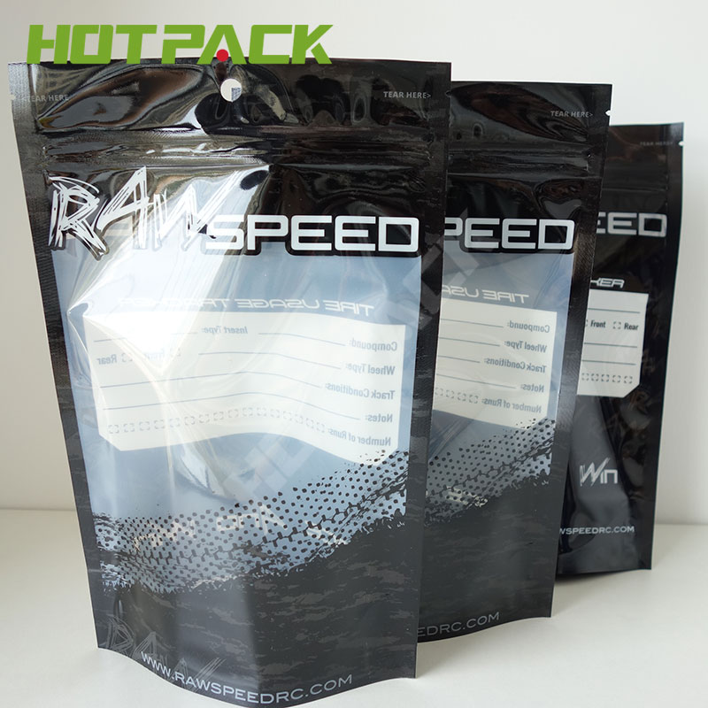 Custom Logo Gravure printing Black Plastic Stand Up Pouch With Window Zipper