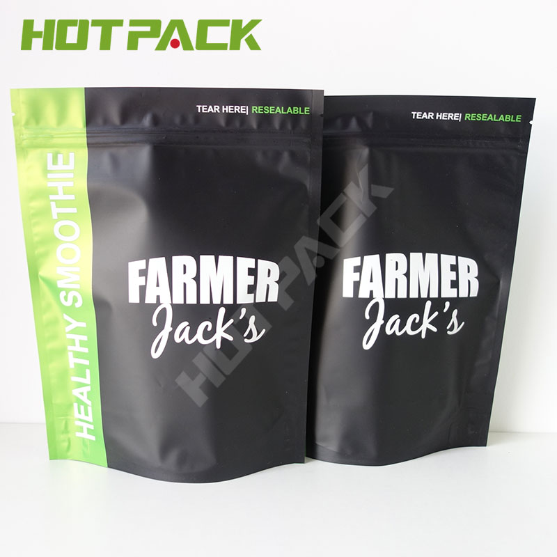 Custom Mylar Plastic Stand Up Pouch Zipper Smoothie Powder Food Packaging Bag With Own Logo