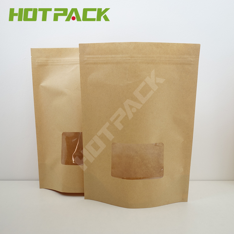 Custom Print Food kraft paper stand up pouch packing bag with clear window
