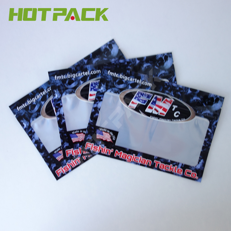 Custom black aluminum foil line fishing lure plastic zipper packing bag with clear window