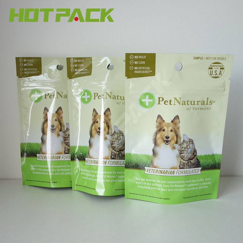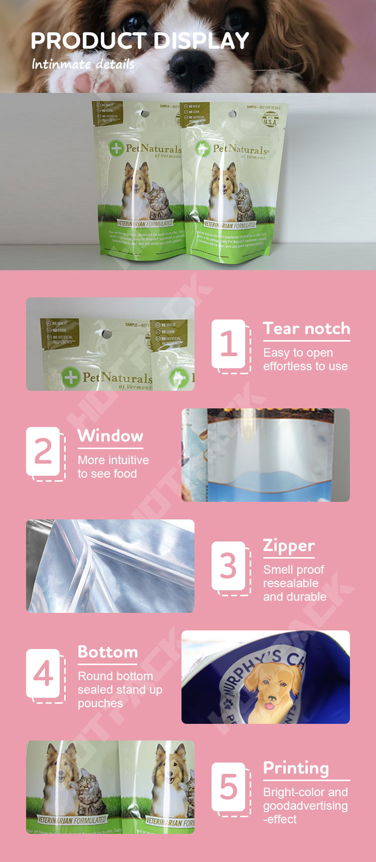 Custom logo Gravure printing stand up pet dog food packing bag with window resealable zipper