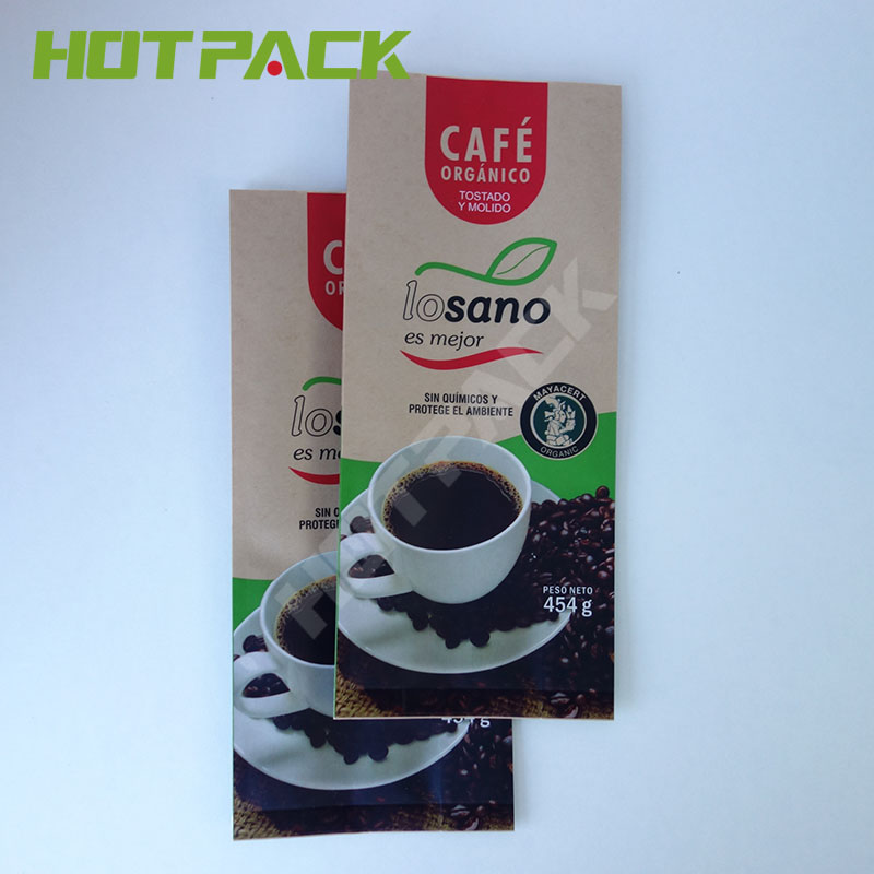 Custom printing Kraft paper side gusseted bag with valve for packaging coffee beans |
