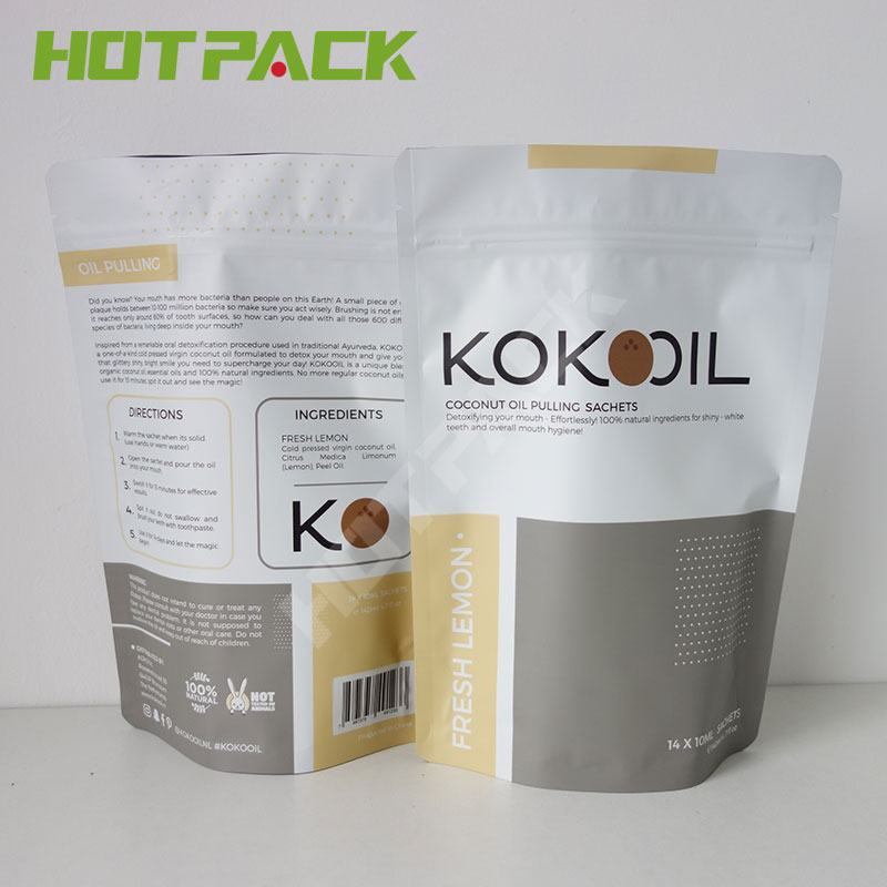 Custom size logo smell proof custom coconut oil packaging plastic stand up zipper mylar bag