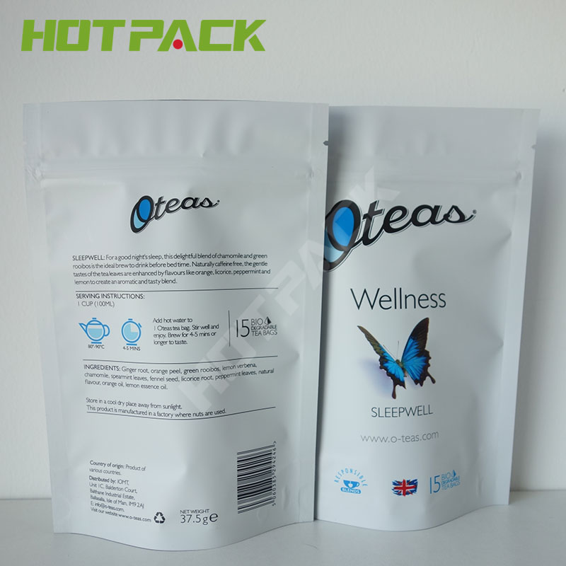 Easy to tear zipper mylar edibles plastic stand up bag for packaging sleeping tea