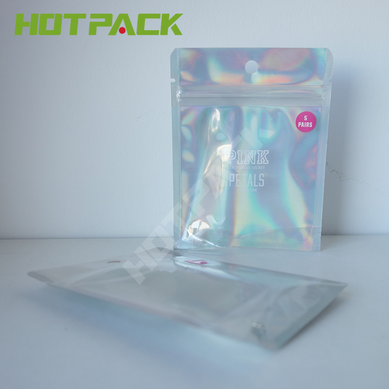 Hot Sales Pink Laser Film Mylar Resealable Plastic Stand Up Bags