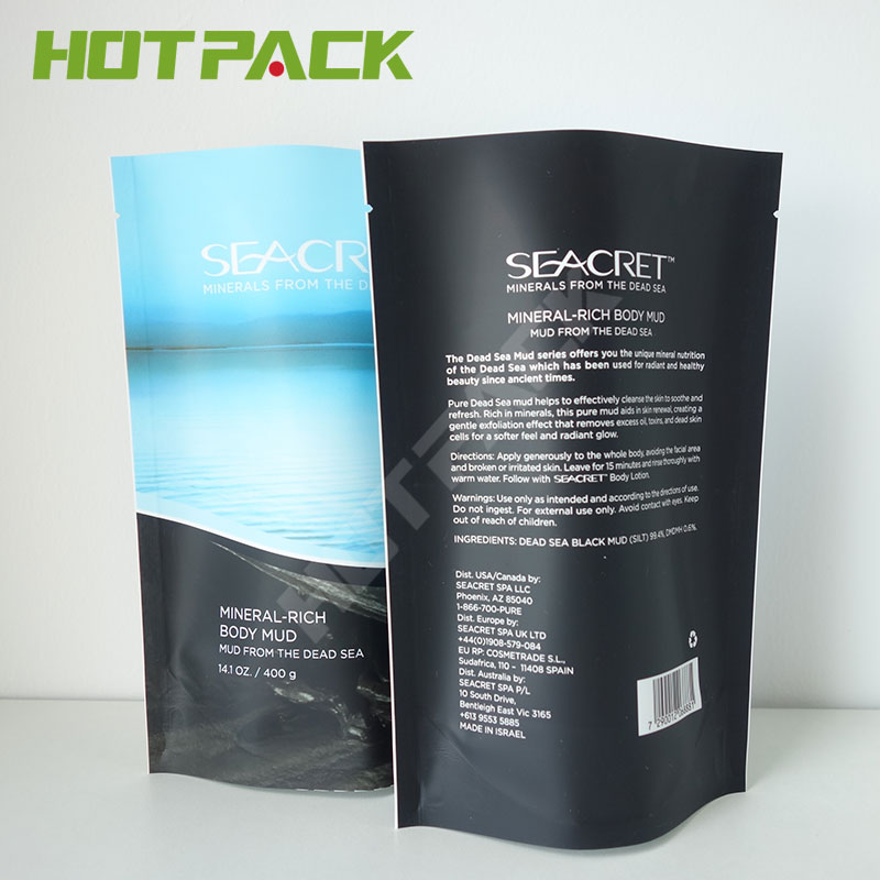 Matte high quality gravure printing mud packaging plastic stand up pouch