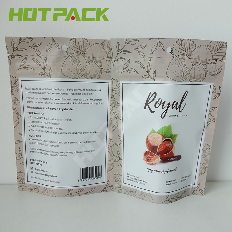 Matte plastic custom printed mylar stand up zipper pouch edible tea packaging bags |