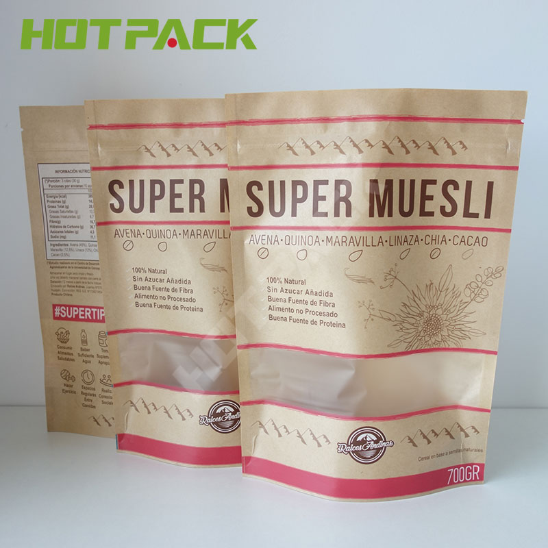 Natural kraft paper frosted window packaging mylar bag recyclable stand up zipper pouch |