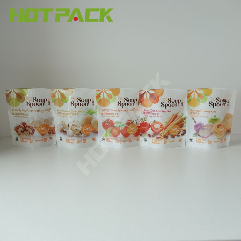 OEM heat seal reusable ziplock soup pouches plastic stand up food package |