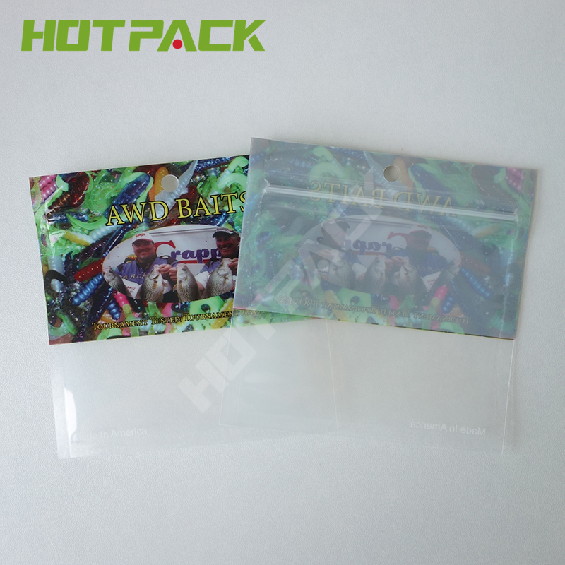 Wholesale Glossy Laminated Mylar Plastic Packaging Fishhook Holographic Ziplock Bags