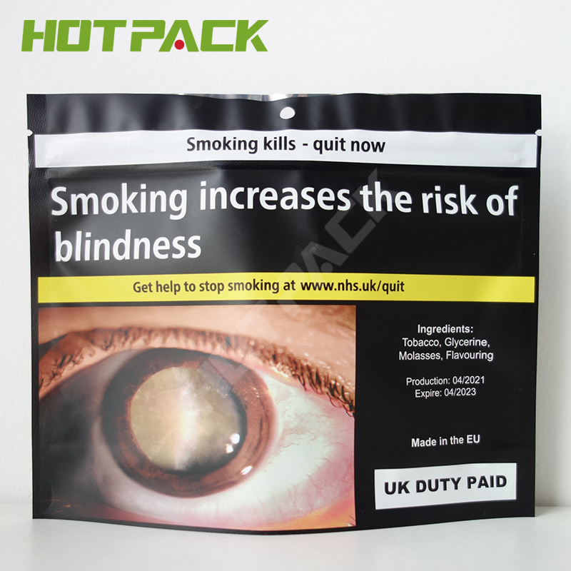 Wholesale Heat Sealing Plastic Zipper Standing Bag For Tobacco leaf
