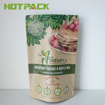 Digital print frosted kraft paper food pouch stand up packaging bag with reusable zipper
