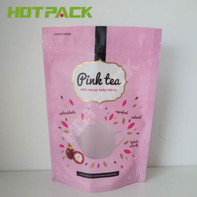Custom Resealable Mylar Food Grade Tea Packaging Bags With Clear Window